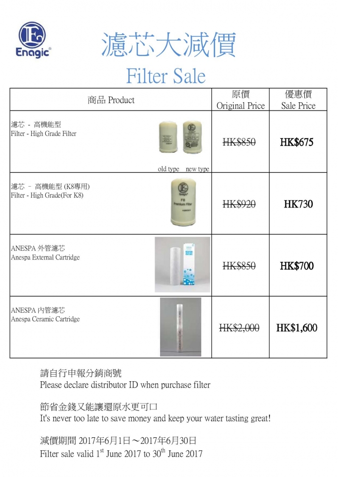 滤芯特价优惠,2017-6-1至30日