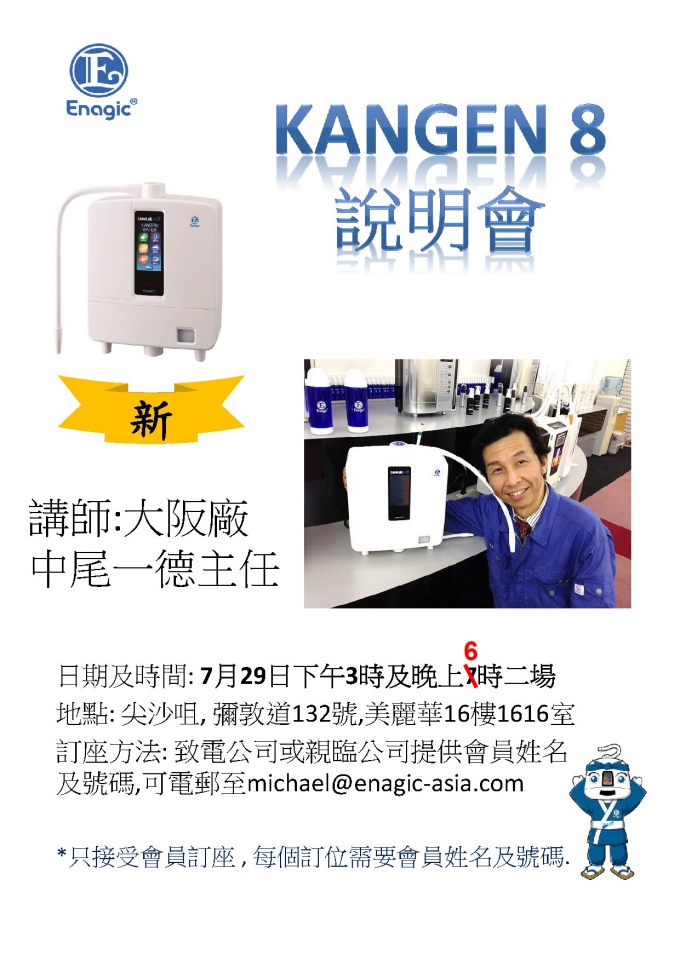 订座方法: 致电公司或亲临公司提供会员姓名及号码,可电邮至michael@enagic-asia.com
