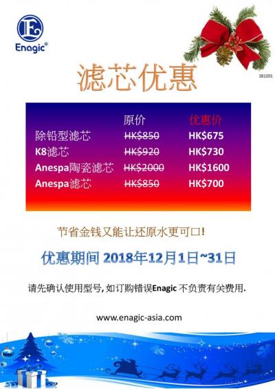 30/11/2018滤芯特价优惠,2018年12月1日至31日