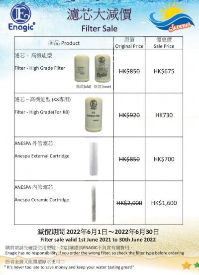 31/05/2022濾芯特價優惠,2022-6-1至30日